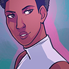 The Tetherer has light brown skin, a round face, and short cropped afro-textured hair. They wear light makeup on occasion, but are generally bare-faced. Their style of dress tends toward monochrome, body-hugging shirts, jackets, and pants, with the occasional patterned black-and-white. They wear a lot of leather and rayon and spandex and nylon. Their chest is entirely flat and masculinized despite their apparently-feminine features, and they could go shirtless without much question if they wished.